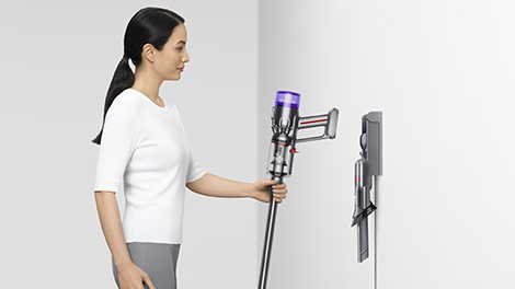 The Dyson Micro 1.5kg™ vacuum drops into the wall-mounted charging dock, ready for your next clean.
