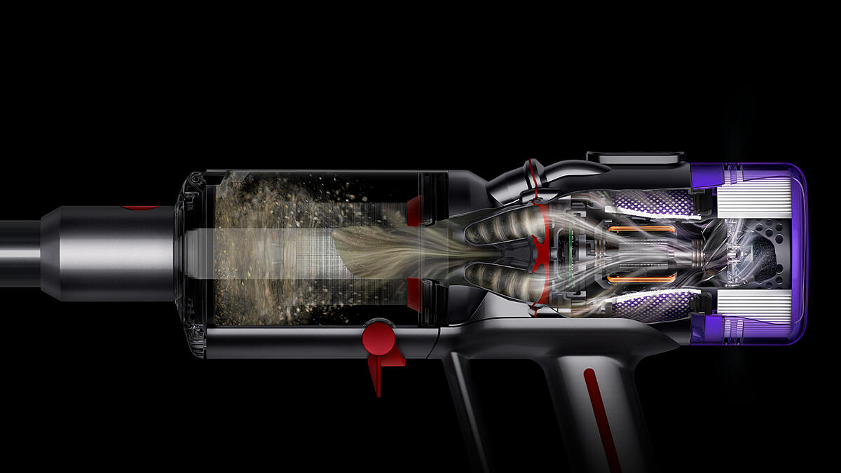 Radial Root Cyclone™ technology Eight cyclones generate forces of up to 96,000g to fling dust into the bin rather than the filter, so there’s no loss of suction.1