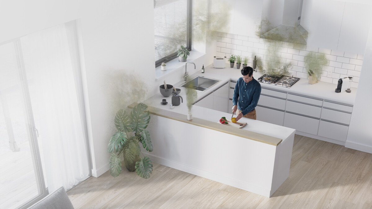 The HEPA H13 filter captures 99.95% of particles as small as 0.1 microns.1 A layer of activated carbon also removes odours and gases including VOCs.2.