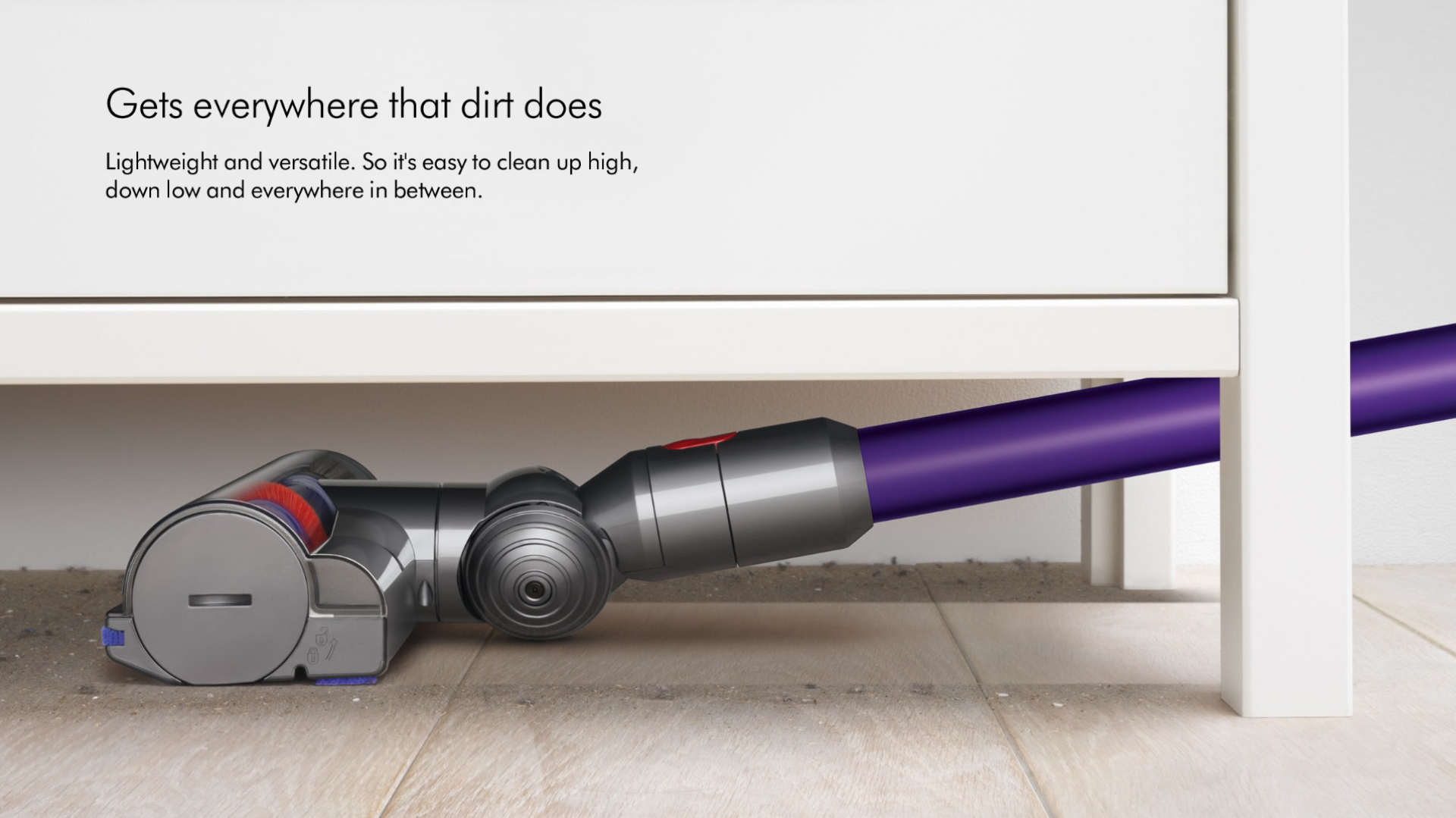 To tackle cobwebs up-high, make use of the stainless steel tubes, or to banish hidden dirt underneath your furniture, try the new Reach Under tool. And, if youre a household with furry friends, the V7 Animal+ will remove ground-in pet hair in no time.